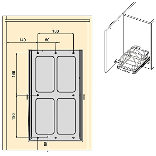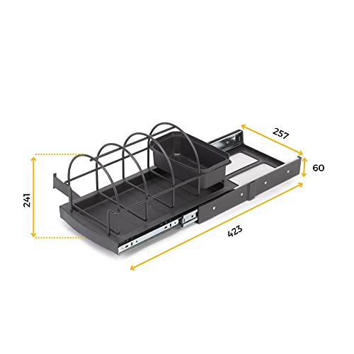 Emuca - Plateau pour accessoires de cuisine, fixation par le bas et extraction manuelle, Plastique gris anthracite, 1 u