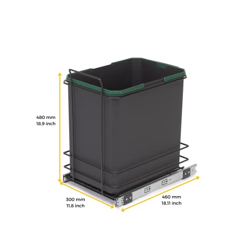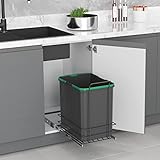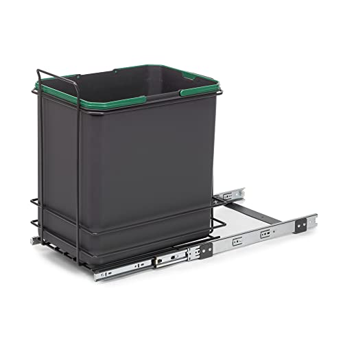 Emuca - Poubelle de recyclage Recycle de 35 L pour cuisine, fixation au sol, extraction manuelle, sans couvercle, Plastique gris anthracite
