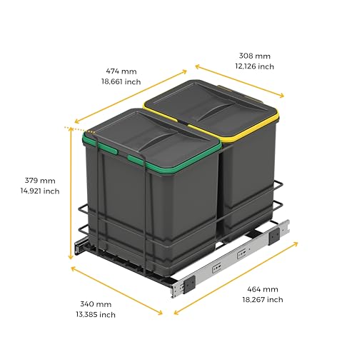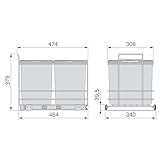 Emuca - Poubelle de Recyclage pour Cuisine, 2 x 16 L, Fixation par Le Bas et Extraction Manuelle, Plastique Gris Anthracite