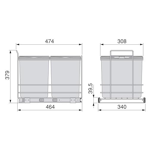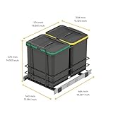 Emuca Poubelle de recyclage Recycle pour cuisine 2 x 16 L fixation par le bas et extraction manuelle Plastique gris antracite