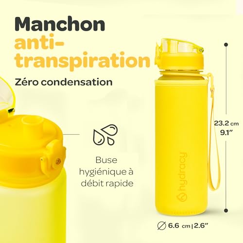 Hydracy Gourde d'Eau 500 mL sans BPA, Bouteille avec Marqueur de Temps, Infuseur et Verrouillage Sécurisé - Housse en Néoprène, Étanche, Anti-Fuite, Réutilisable, Légère - Idéal pour Sport, École