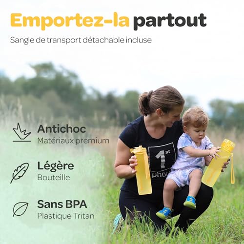 Gourde dEau 500 mL sans BPA Bouteille avec Marqueur de Temps Infuseur et Ver...