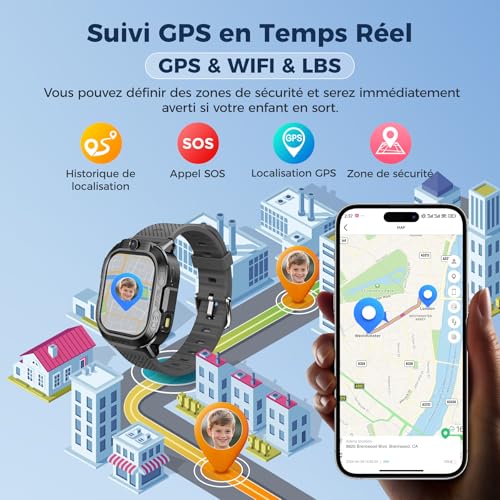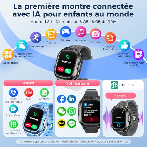 Montre Connectée Enfant GPS ChatGPT AI 4G - Appels Vidéo 47 Jeux Étanchéité IP68
