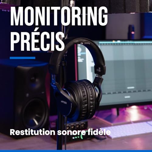 WOODBRASS HP1000 Casque Audio Monitoring Studio fermé précis et détaillé - Qualité Professionnelle, Confortable et Robuste idéal pour l'enregistrement Home Studio, Mao, Mixage, Podcast, DJ