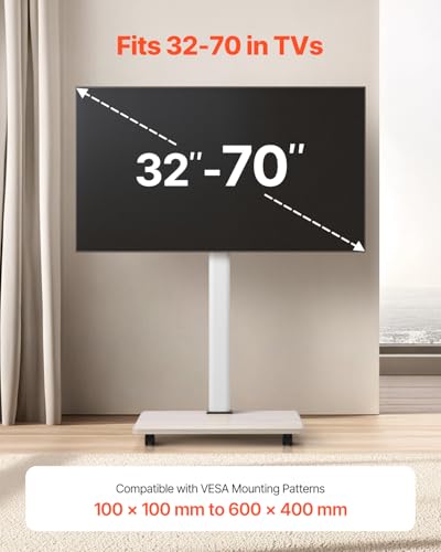 VEVOR Support TV à roulettes, pour écrans de 812,8 à 1778 mm, Chariot TV Mobile, Rotation Gauche-Droite à 25° et Hauteur réglable, jusqu'à 45 kg, Max. VESA 600 x 400 mm, pour Salon, Bureau, extérieur