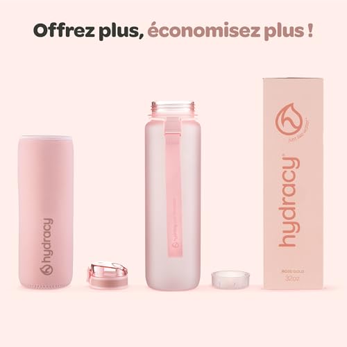 Hydracy Gourde d'Eau 1L sans BPA, Bouteille avec Marqueur de Temps, Infuseur et Verrouillage Sécurisé - Housse en Néoprène, Étanche, Anti-Fuite, Réutilisable, Légère - Idéal pour Sport, École, Travail