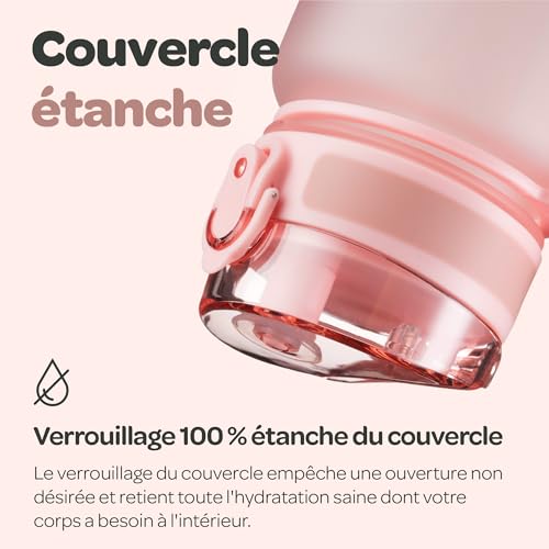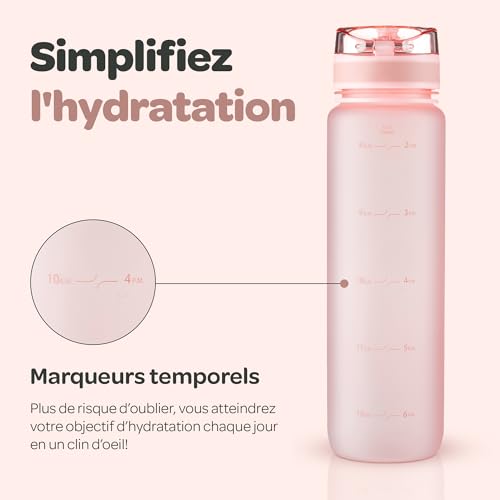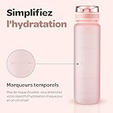 Gourde dEau 1L sans BPA Bouteille avec Marqueur de Temps Infuseur et Verroui...