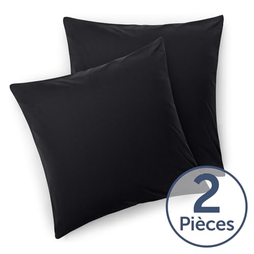 Blumtal Taie Oreiller 60x60 Lot de 2 - Housse de Coussin Microfibre - Taies d'oreillers avec Fermeture enveloppe, certifiée Oeko-Tex, Extra Douce et Lavable - Noir