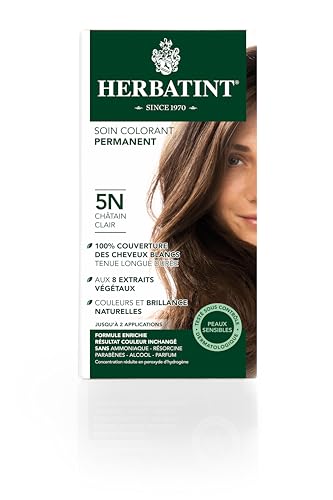 Herbatint Soin Colorant Permanent Cheveux 5N Châtain Clair - 150 ml, sans Ammoniaque, 100% de Couverture des Cheveux Blancs, Testé Dermatologiquement pour Peaux Sensibles, avec 8 Extraits Végétaux Bio