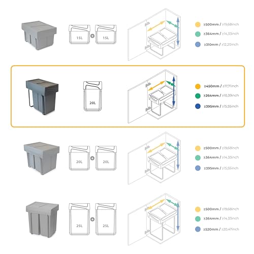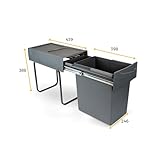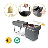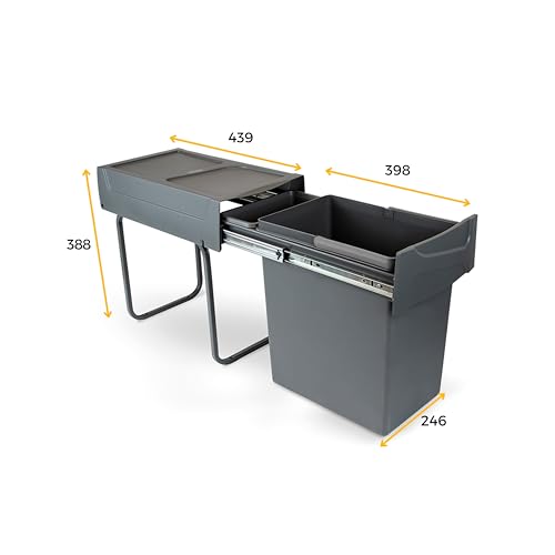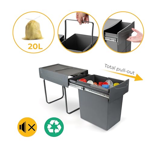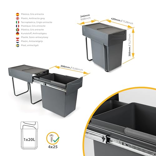 Emuca - Poubelle avec Fixation inférieure pour la Cuisine, Poubelle de Recyclage Amovible, 1x20 L, Acier et Plastique, Gris Anthracite.