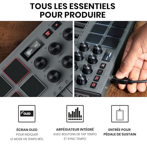 Clavier MIDI - Akai - MPK Mini MkIII - 25 touches - 8 pads - Écran OLED - Gris