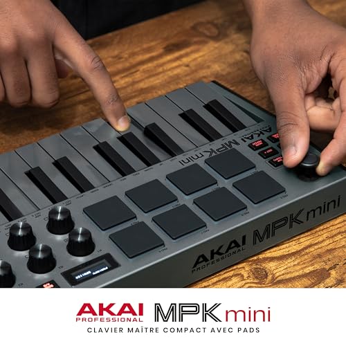 Akai Professional MPK Mini MK3 - Clavier MIDI USB Portable avec 25 Touches, 8 Pads de Batterie, Logiciels et Native Instruments Sound Package (NKS Integration), Gris