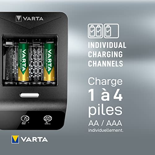 Varta Chargeur Ultra Rapide + 15 Minutes pour Batteries Rechargeables AA/AAA Inclus 4 Batteries AA 2100 mAh 57685101441
