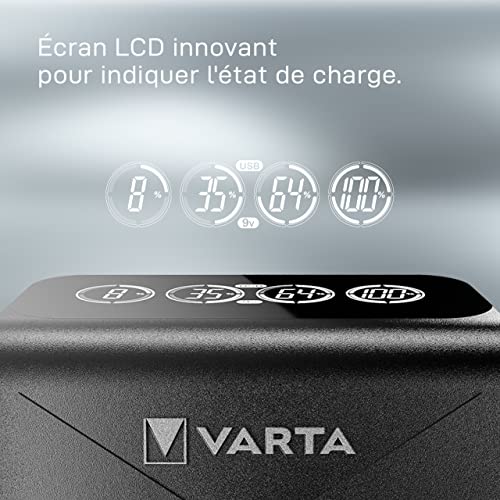 Chargeur fente unique - VARTA - 9V USB - Écran LCD - 4 accus ReadyToUse 2100 mAh