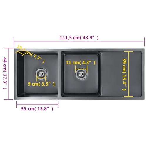 vidaXL Evier de Cuisine Fait à la Main Evier Rectangulaire Evier Encastré Évier à Vasque Intérieur Maison Résistant Robuste Acier Inoxydable Noir