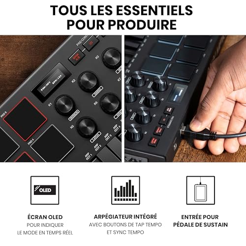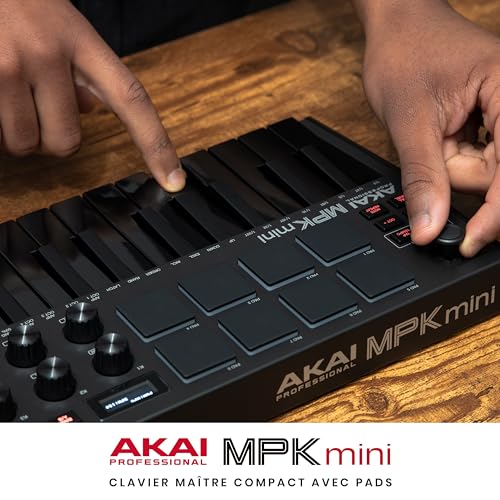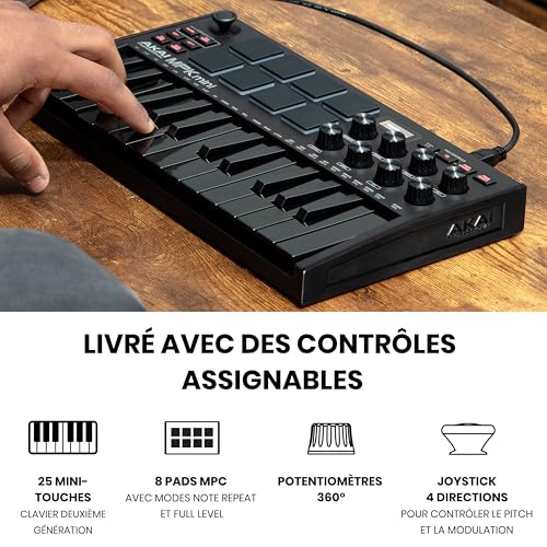 Akai Professional MPK Mini MK3 - Clavier MIDI USB Portable avec 25 Touches, 8 Pads de Batterie, Logiciels et Native Instruments Sound Package (NKS Integration), Noir
