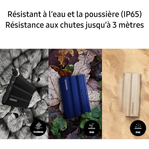Samsung SSD Externe T7 Shield, 2 To, Noir, MU-PE2T0S/EU, vitesse de lecture/écriture jusqu'à 1050Mo/s, USB 3.2 Gen 2