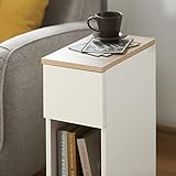 Table de Chevet Étroite SoBuy – 20×35×60 cm Tiroir Coulissant + Étagère MDF + PB E1 Blanc/Naturel Chambre/Salon