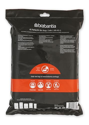 Brabantia Sacs Poubelle PerfectFit (Code L - 40L / 45L), Ultra Résistant, Poignées Coulissantes (40 Sacs)