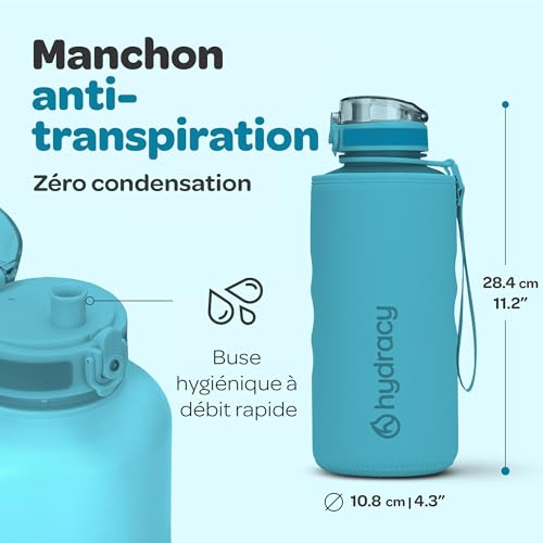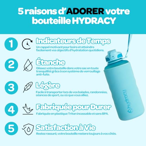 Hydracy Gourde d'Eau 2L sans BPA, Bouteille avec Marqueur de Temps, Infuseur et Verrouillage Sécurisé - Housse en Néoprène, Étanche, Anti-Fuite, Réutilisable, Légère - Idéal pour Sport, École, Travail