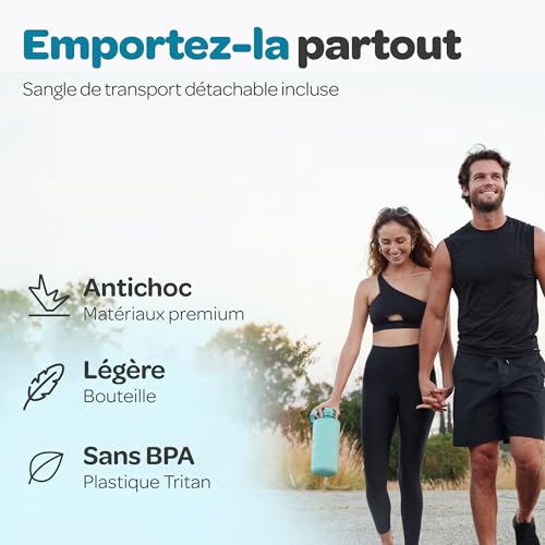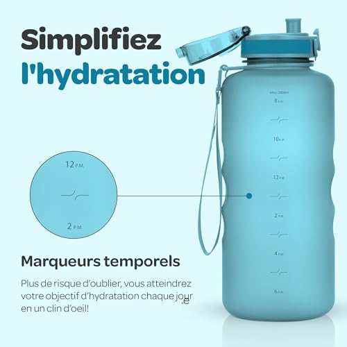 Gourde dEau 2L sans BPA Bouteille avec Marqueur de Temps Infuseur et Verroui...