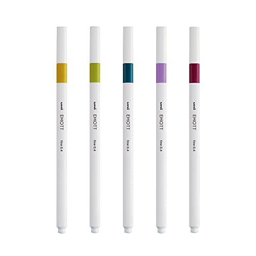 uni-ball Emott Uni Mitsubishi Pencil - Pochette de 5 Feutres Retro Colors - Écrire, Dessiner, Tracer avec Style ! - Pointe Fine 0,4 mm - Bleu Vert, Orchidée, Lie de Vin, Jaune Paille, Vert Pomme