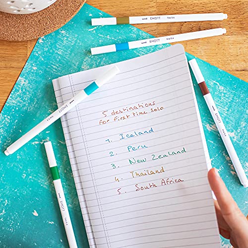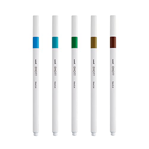 uni-ball Emott Uni Mitsubishi Pencil - Pochette de 5 Feutres Island Colors - Pour Écrire, Dessiner, Tracer avec Style ! - Pointe Fine 0,4 mm - Vert, Bleu Ciel, Bleu Turquoise, Jaune Fonce, Marron