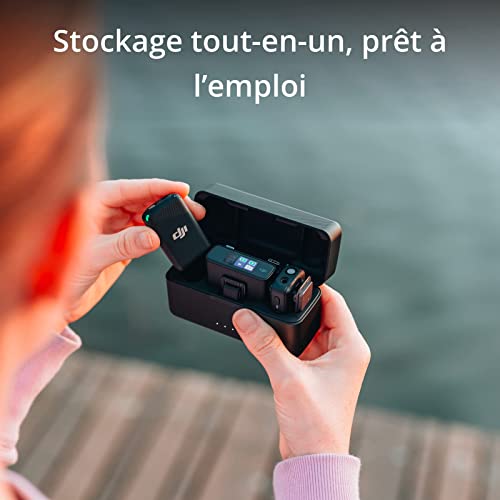 DJI Mic (2 TX + 1 RX + Boîtier recharge) - Compact et Portable micros Lavalier sans Fil à Enregistrement à Double Canal, Transmission à 250 mètres, 15 heures, Système pour Smartphones, caméras