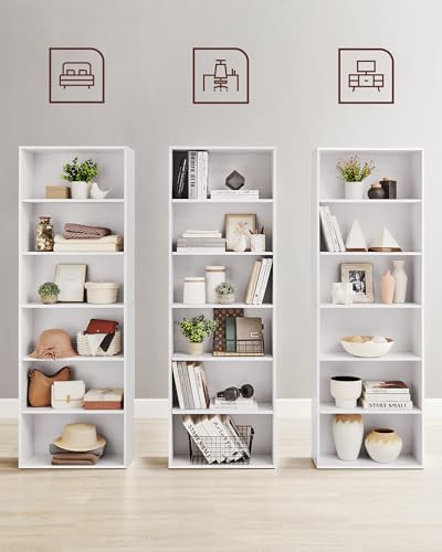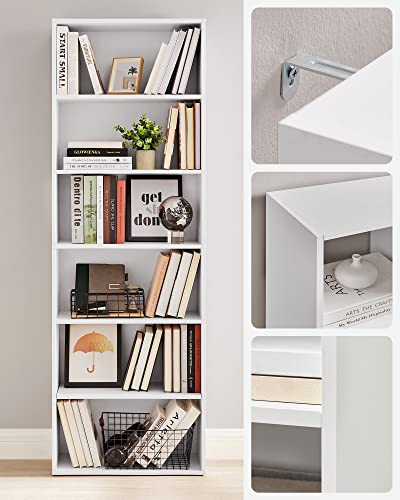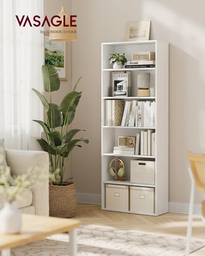 VASAGLE Bibliothèque, Étagère sur 6 Niveaux, Meuble de Rangement Ouvert, Étagère, 24 x 60 x 178,5 cm, pour Salon, Bureau, Salle à Manger, Blanc Nuage LBC169T14