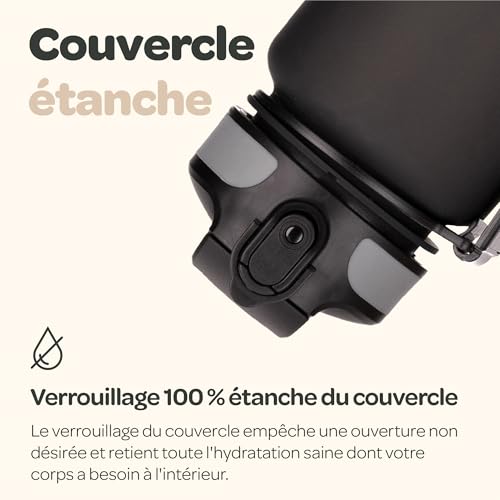Gourde dEau 1L sans BPA Bouteille avec Marqueur de Temps Paille et Verrouill...