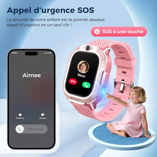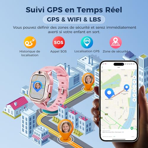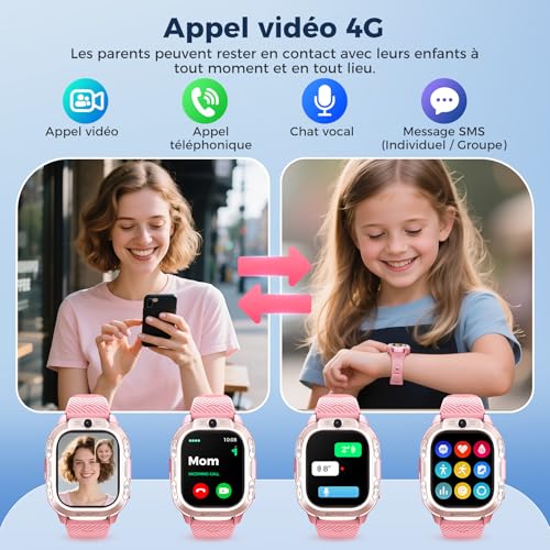 Montre Connectée GPS Montre Enfant 4G Rose - Appels Vidéo 47 Jeux Mode Scolaire