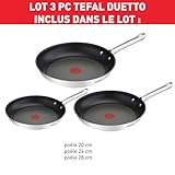 Tefal Duetto Lot de 3 poêles 20/24/28 cm, Induction, Acier inoxydable, Revêtement antiadhésif, Thermo-Spot, Cuisson saine, Saisie parfaite A704S363